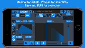 De interface van auGEN X is gebruiksvriendelijk en ontworpen voor snelle en nauwkeurige controle over audio-signalen. De app ondersteunt ook AUv3 Audio Unit extensies, waardoor het eenvoudig integreert met populaire audioprogramma's zoals GarageBand en Cubasis. Met een uitgebreide frequentiebereik en verschillende geluidsmodi is auGEN X een waardevol hulpmiddel voor zowel muzikanten als audio-engineers.